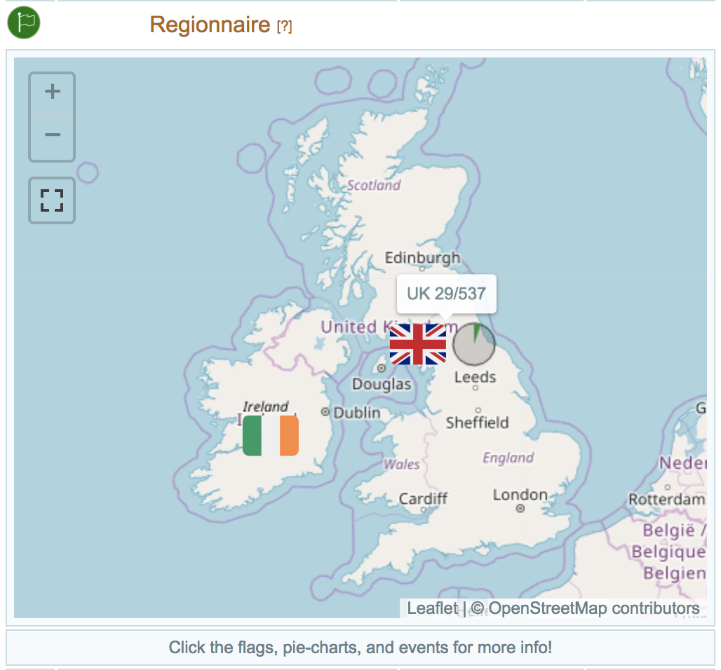 If the country is split into sub-regions, clicking on the flag will expand out the pie-charts to show one for each region: